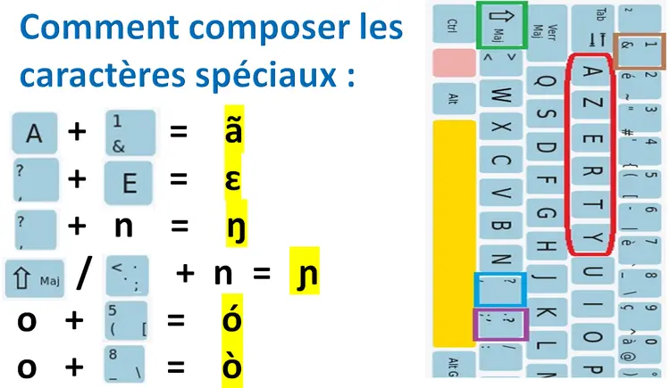 Les combinaisons de touches pour obtenir ces caractères spéciaux sont les suivantes :