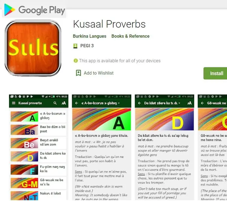 Ou bien vous pouvez télécharger directement depuis Google Play Store des applis kusaal sur votre smartphone our Tablette Android: